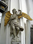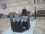 А за макетом, возле стен костела установлен необычная скульптура Святого Духа.
