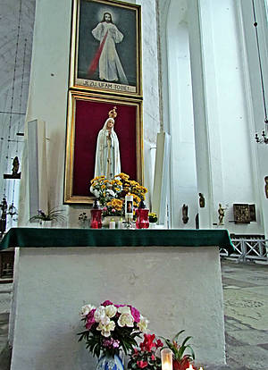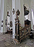 Крупная, но архитектурно-сдержанная снаружи, базилика еще и очень скромна внутри, и это при том, что носит статус "базилики" (я просто только недавно сам узнал, что "базилики" носят статус "королевских церквей" ("царский дом",перевод с греческого), а не просто приходских, и присваевается специальной буллой папы Римского).