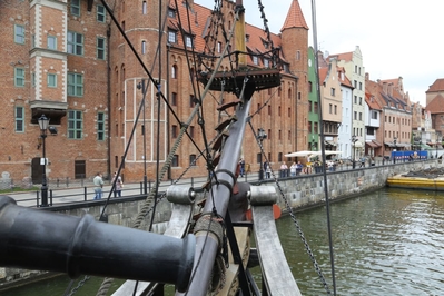 Идём в исторический центр Гданьска, развеяться от тягостных дум. Зазывала на набережной приглашает прокатиться на каравелле «Черная жемчужина». Так, а почему бы и нет?