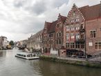 Итак, приняв за точку отсчёта Гравенстен, выходим на мост через искусственный канал, прорытый в 13 веке, чтобы соединить Гент с Северным морем. В живописном ряду домов вдоль канала есть один, торцевая часть которого сохранилась деревянной. Единственная во всем городе!