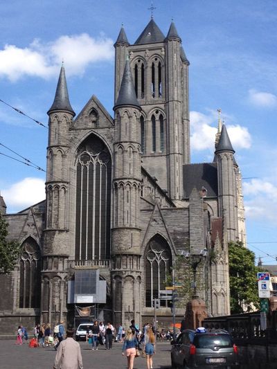 А вот, наконец, и третья башня Гента. Соперничая с Беффруа, символизирующей мирскую власть, мрачной громадой тянется к небу Собор Святого Бавона.
