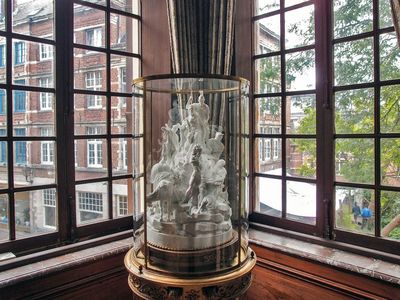 Арку украшают скульптуры Нептуна и двух рек — Шельды и Лис. Одно время в Рыбном доме размещалась больница, и каждый раз, когда на свет появлялся младенец, на арке зажигали огонь. Красивый обычай.