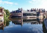 Впереди находится мост Святого Михаила и массивное здание бывшего доминиканского монастыря Хет Панд. Сейчас там располагается Университет Гента и конференц-центр.