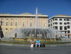 Предыдущим вечером, практически ночью, выйдя на"прогулку голопом" по центральной части Генуи, мы услышали мощный, равномерный гул. Пойдя на странный в тишине ночи звук, мы вышли на площаль Феррари и увидели этом огромный, сумашедший фонтан. Так звучит водопад, когда подходишь к нему. Днем фонтан не менее хорош, в окружении старинных зданий. Расположенное рядом круглое здание Биржи ныне — центр проведения культурных мероприятий. Отсюда очень не хочется уходить, хочется немного побродить со всей этой красотой рядом.