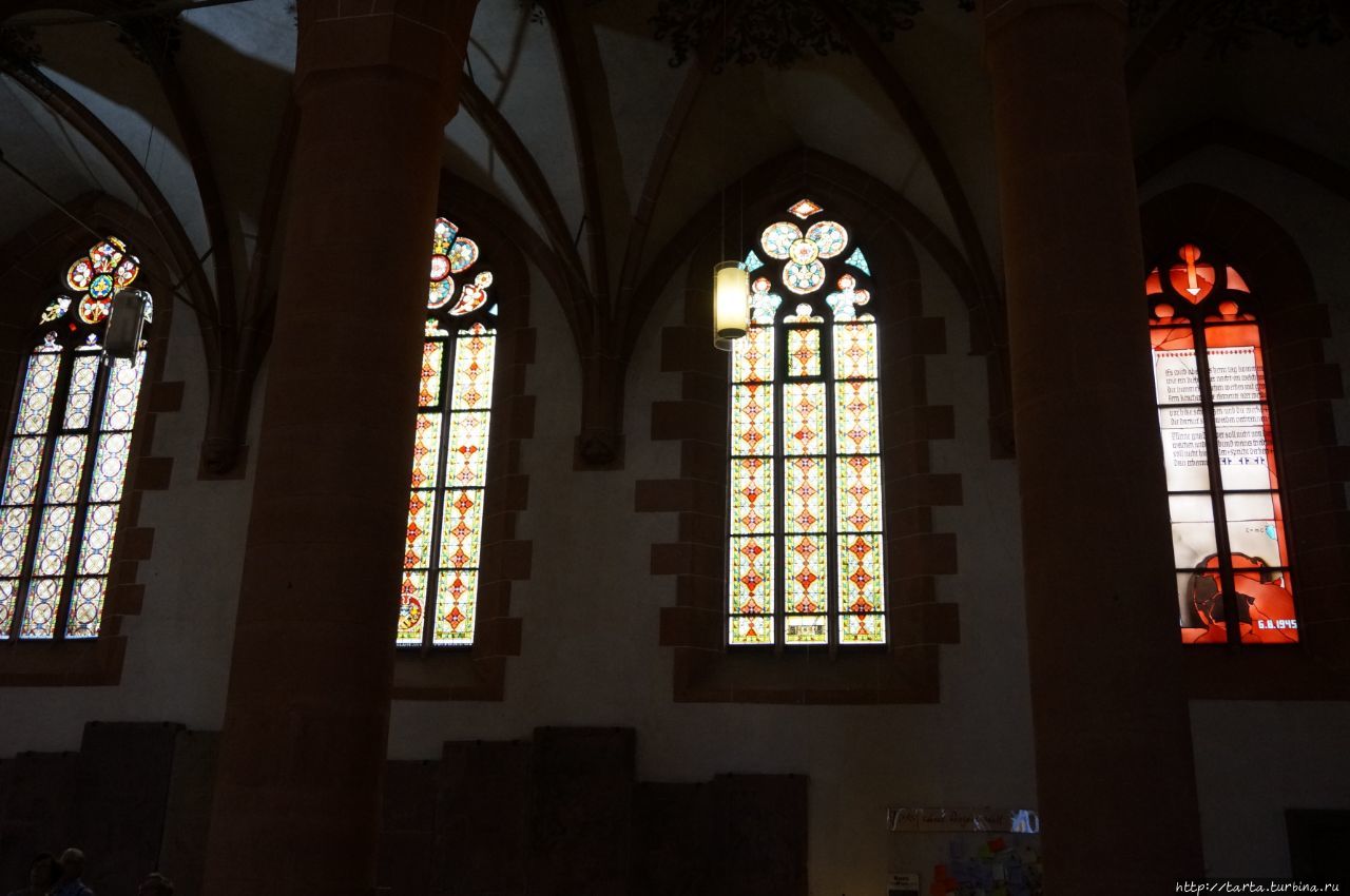 Храм серьезно пострадал от пожаров во время войны за пфальцское наследство (погибло и много людей, запертых в церкви) и от французских мародеров. Он не раз разрушался и снова отстраивался.