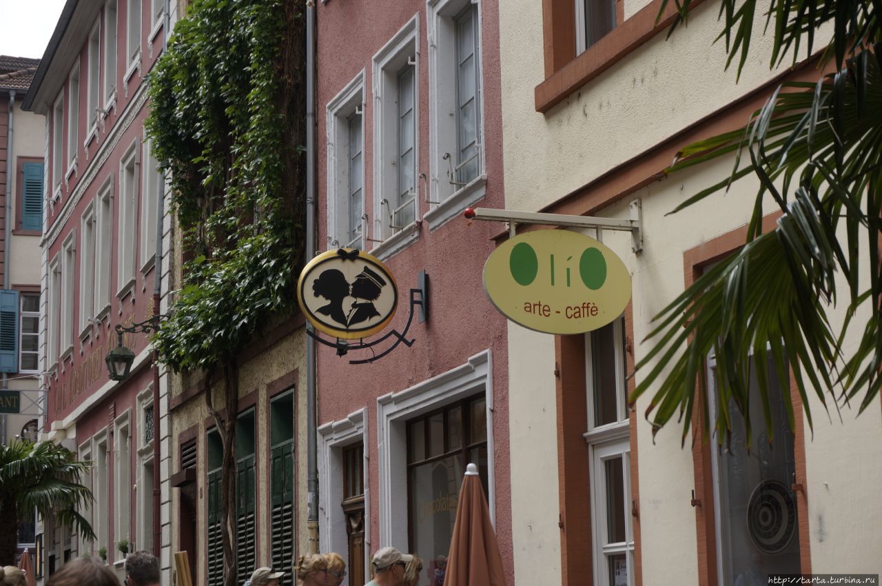 Самая длинная пешеходная улица в Германии, протяженностью 1,6 км и она же самая оживленная улица Гейдельберга с множеством магазинов и разных заведений – Hauptstraße. По ней и вообще по городу любопытно прогуливаться не спеша, глазея на фасады зданий и прохожих, разглядывая вывески и витрины,