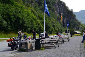 И не для нас одних, постоянно встречаемся с небольшой командой рокеров. То они нас обгоняют, то мы их. Уже и приветствовать стали друг друга. Кстати, рокеров из разных стран здесь достаточно много и часто можно увидеть среди них женщин, причём всех возрастов. Вот и на одной из остановок вместе отдыхали.