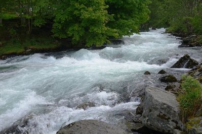 А мы с Аллой направились к месту впадения водопада во фьорд.
