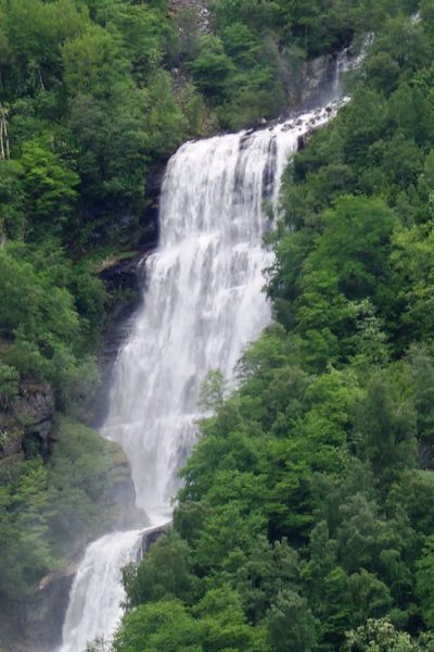 И тут же, не давая опомниться и рассмотреть тонкий узор сегодняшнего дня, вступает со своей партией Жених. Он сегодня что называется в ударе. Мощно грохочет его бас, выбрасывая струю воды далеко от берега сильным напором. Это вам не кисея, чтобы растекаться по камням, он вылетает с высоты, словно наконец определился с невестой и ему просто необходимо перепрыгнуть фьёрд и прикоснуться к любимой.