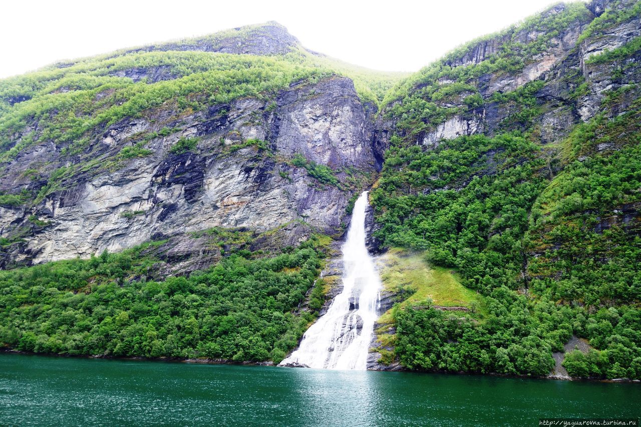 Теперь еще от нас уберут буек, ограждающий пространство стоянки от непозволительного приближения других плавстредств, и путь будет свободен.Ну, вот теперь можно и в путь! Уж сегодня мы не проспим, во всеоружии, то есть с фотоаппаратами, готовыми к съёмке, а также одетые с учетом ветреной погоды, поднимемся на верхнюю палубу для наилучшего обзора. Сначала попрощаемся с Гейрангером, кто знает, когда еще состоится наша встреча…