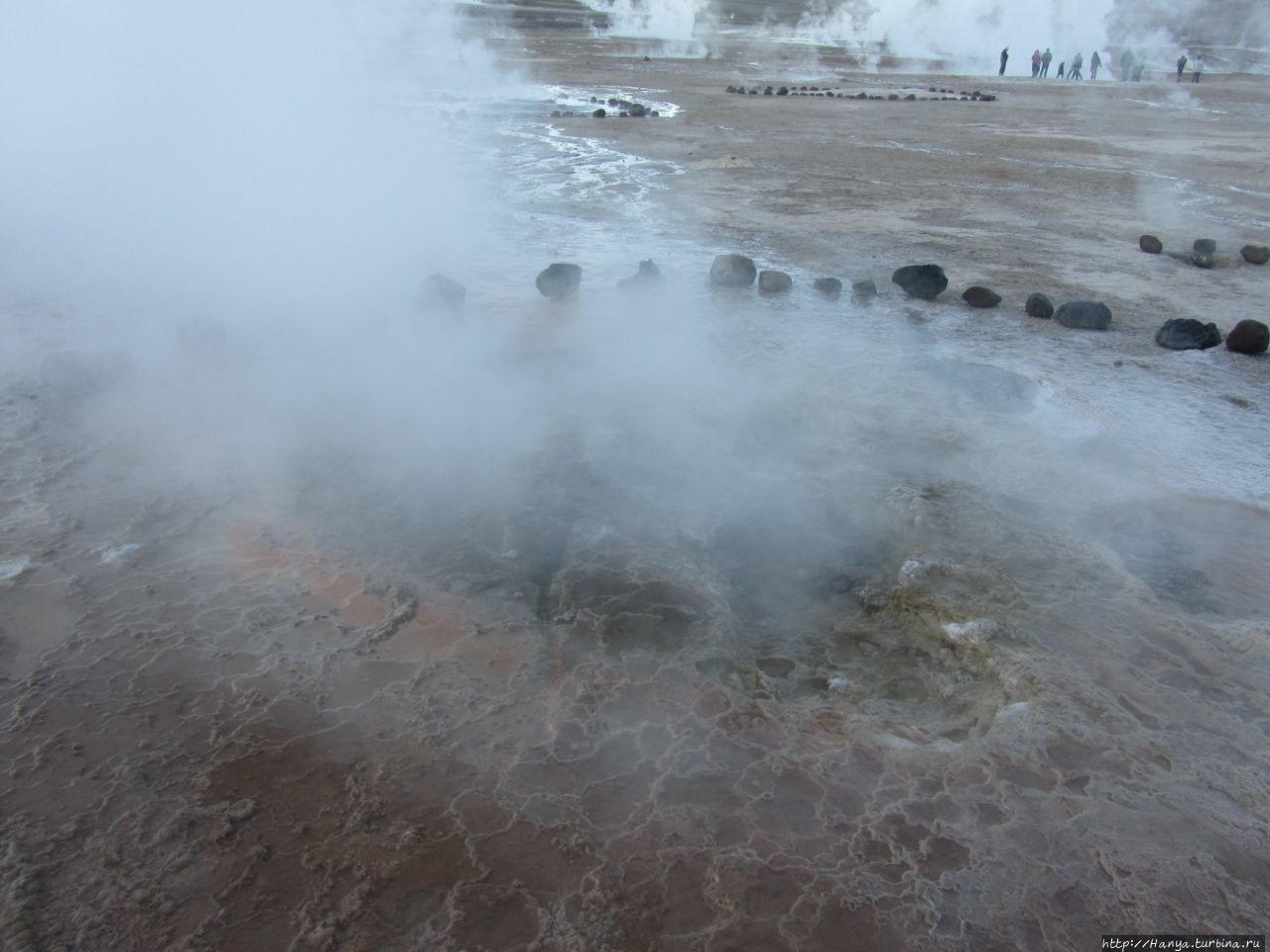 Территория долины предусмотрительно размечена дорожками, огражденными мелкими камешками – заходить за которые строго запрещено, так как чревато провалом в кипящий котлован.