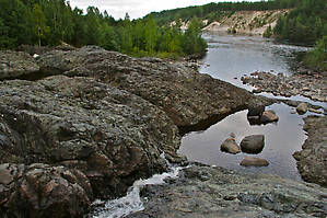 Сейчас по этому порогу, чьи размеры пожалуй еще больше поражают воображение, когда наблюдаешь его в обмелевшем виде, течет разве что маленькая струйка. Фантазия быстро подсказывает каким мог быть этот водопад тогда лет 70 назад.