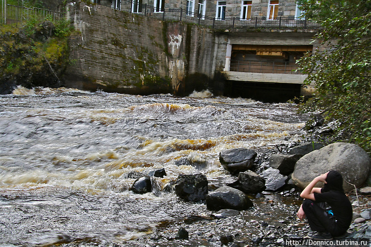 От порога легко перейти к каскаду ГЭС и быстрому течению реки сразу после выхода с турбин ГЭС. Люди частенько приходят сюда и смотрят на гипнотизирующее течение быстрой реки...