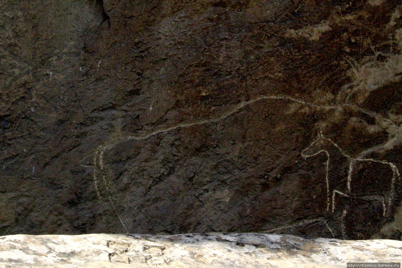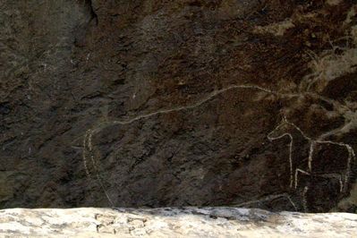 А в тени тем временем маленький пони зачем-то застрял в чреве огромного быка. Скорее всего конечно наслоение картинок из разных эпох — более старые крупного размера, более поздние маленькие. Да и логично, что рисунок лошади более поздний так как на старых рисунках лошадей нет.