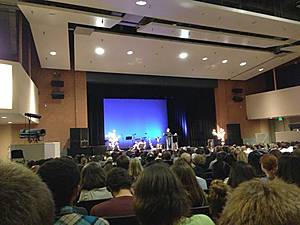 Далее мы проследовали в зал и сразу при входе меня удивило наличие на сцене барабанной установки и музыкальных инструментов (3 гитары и синтезатор). Так же, отметил и то, что людей собрался полный зал (а это не менее 500-700 человек). Началась «церемония» в 9:05 и началась с мини концерта. Корбан говорит, что там постоянно новые группы, но в этот раз была с женским вокалом и играли они классно. Все 3 песни были конечно про бога, и слова там были примерно одинаковые, но исполнены были очень здорово. Чтобы понять стиль, послушайте Joan Osbourne – One Of Us. Вот все 3 исполненные песни были там=кими же хорошими и по исполнению и по мелодии и по голосу.