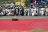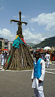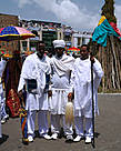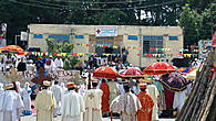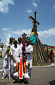 В целом церемония проходит похоже на увиденную в Бахр-Даре Обретение Креста. День первый, но Гондэр, несмотря на то, что столичные функции исполнял очень давно, сейчас является достаточно небольшим городом, поэтому церемония празднования проходит более скромно и по-домашнему, но, тем не менее, все, что положено, присутствует: и внушительные священники, и участвующие в церемонии монахи, большинство из которых рады поговорить и рассказать чужакам из далекой ледяной Раши о том, как для них это важно и что они — народ уникальный; и ритуальные танцы в сопровождении народных инструментов, и певчие, ну и, конечно, поджигание здоровенного костра (правда, в какой-то момент оказалось, что цветочков на костре так много, что они закрыли доступ кислороду и костер погас) и размазывание священного пепла по лицу. Разница лишь в том, что люди хорошо выспались, хорошо позавтракали, никуда не торопятся и получают от церемонии колоссальное удовольствие. Но, конечно, нет такой мистики, которая происходит в ночное время.