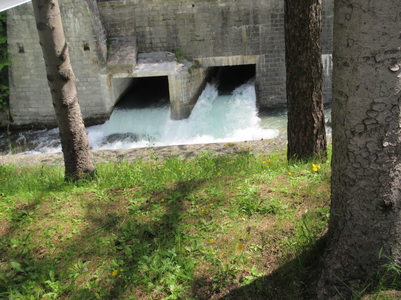 Из двух тоннелей под зданием ГЭС с шумом вырывалась вода, отработавшая свое в турбинах станции и произведя необходимые людям киловатт-часы.