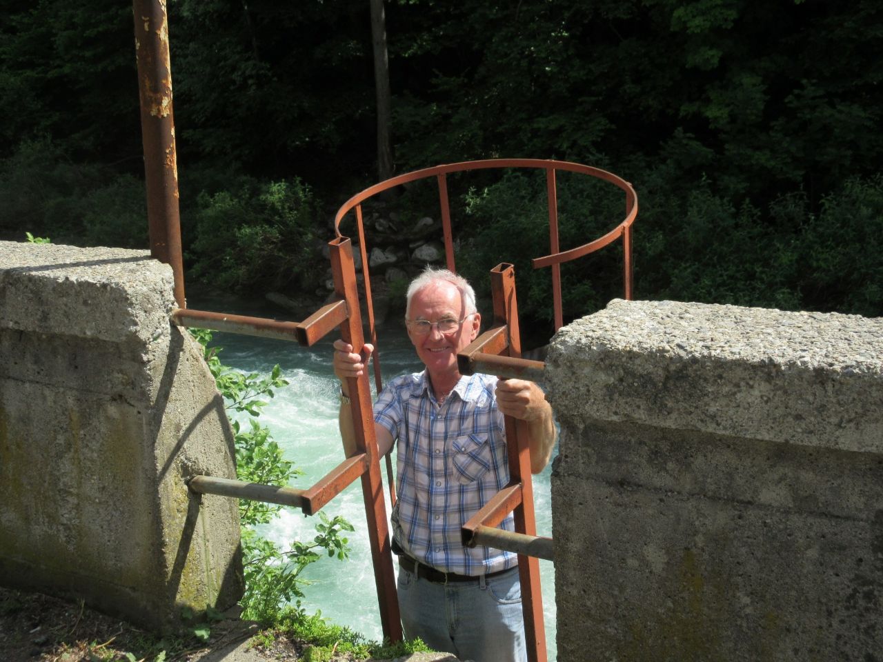Обнаружил спуск к реке. Интересно, что там? Спустился по лестнице, а там – смотреть нечего, разве что ноги натруженные смочить в ледяной воде. Здрасьте, всем привет!