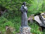 Судя по надписи, фигуру изваял некий Anton Jordan в 1977 году. Вызывает недоумение монашеское одеяние мамаши. Наверно согрешила, за что ее изгнали из монастыря, потому и место ей нашлось только в лесу. Чтоб ей не скучно было, я рядом памятник себе воздвиг нерукотворный. И чому ж я не сокіл?!