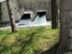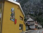 Тут же на границе, буквально на нейтральной полосе разместилась гидроэлектростанция (Wasserkraftwerk Gondo), и судя по немецкому языку на вывеске, принадлежит она Швейцарии.