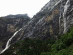 Согласно местной легенде в этот водопад когда-то очень давно бросилась девушка, не выдержав мук неразделенной любви, так что эта часовенка здесь неспроста. Там и табличка с описанием этой драмы. За достоверность этой легенды не ручаюсь, но сюжет классический и повторяющийся. Сафо сиганула со скалы, Катерина (та, что «луч света в темном царстве») – бросилась в омут с головой, Анна К. воспользовалась поездом, а женщины кантона Вале предпочитают водопады, благо их тут много. Подозреваю, что и скульптура монашки с младенцем неподалеку тоже как-то привязана к этому водопаду.