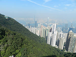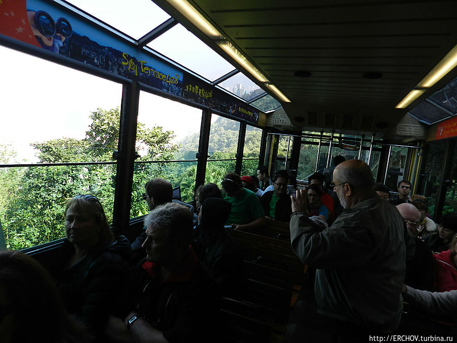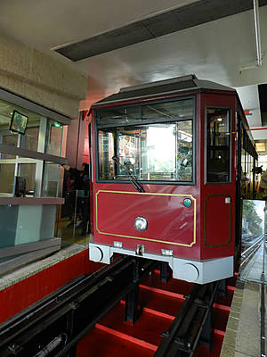 Следующим пунктом программы мы решили посетить Пик Виктория. Доезжаем на метро до станции Central, находим выход J2 и движемся вверх по указателям. На Пик можно подняться на автобусе №15, но мы предпочитаем старый гонконгский трамвайчик, который курсирует здесь с 1888г.