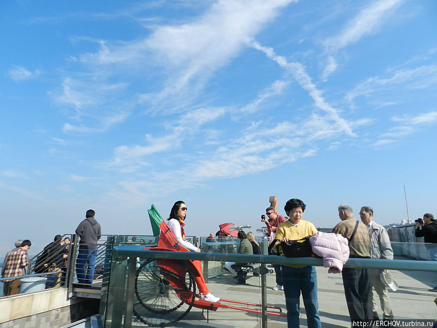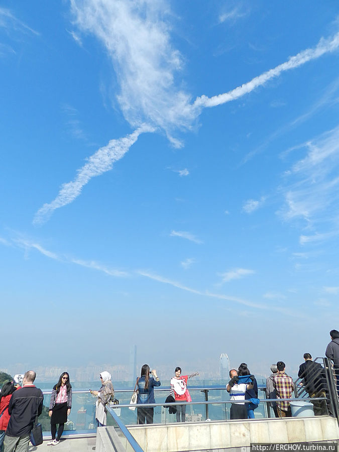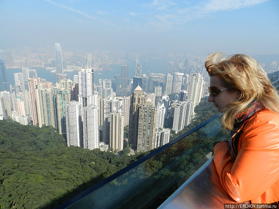 Сам Пик это здание в несколько этажей в форме ромбовидной чаши — внутри кафешки и магазины, а сверху обзорная площадка. С погодой нам повезло, виды на залив и на город открылись просто завораживающие.
