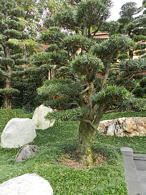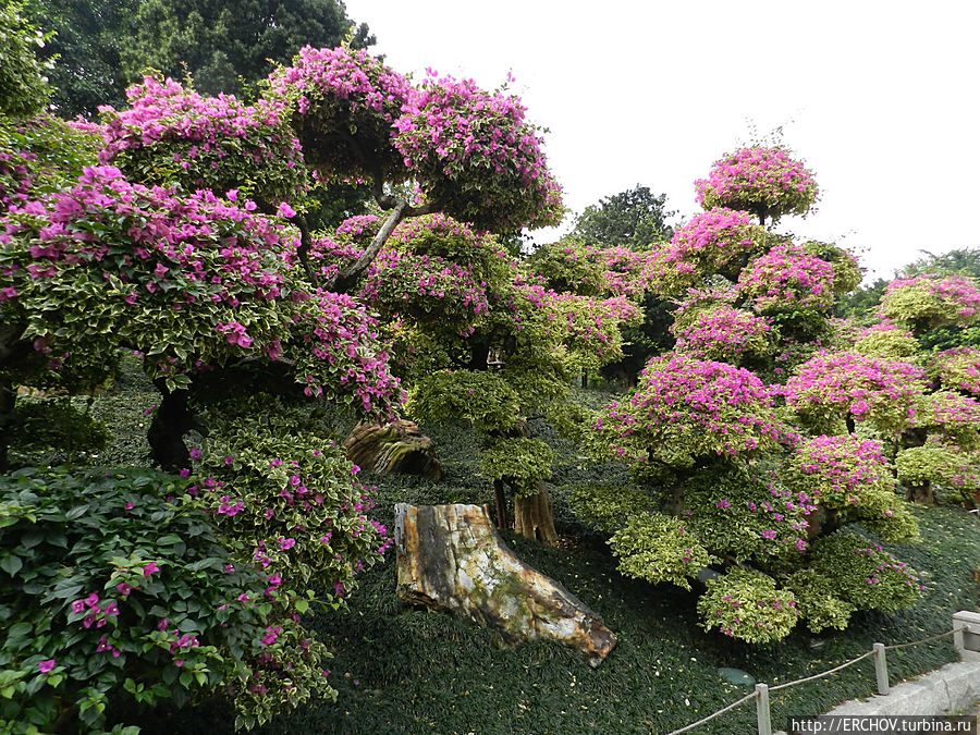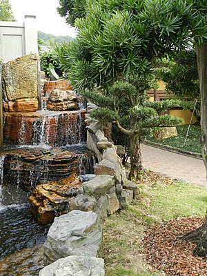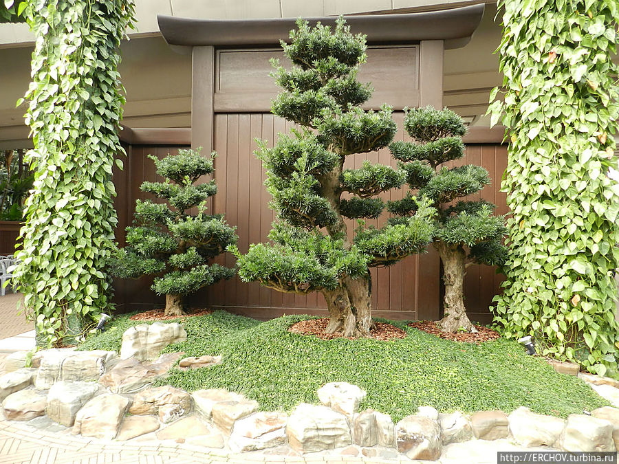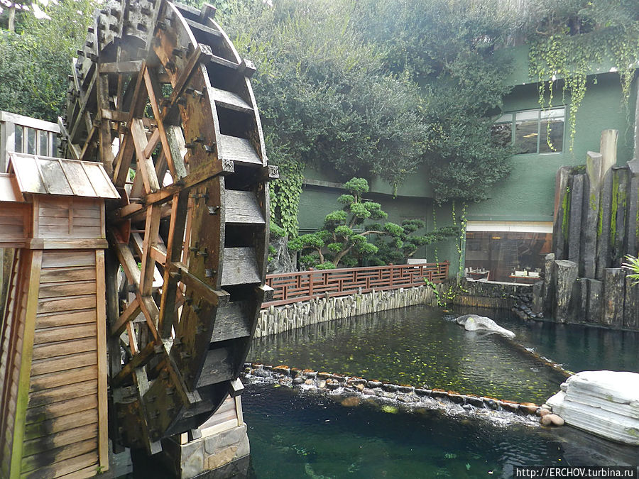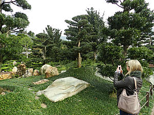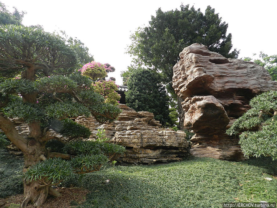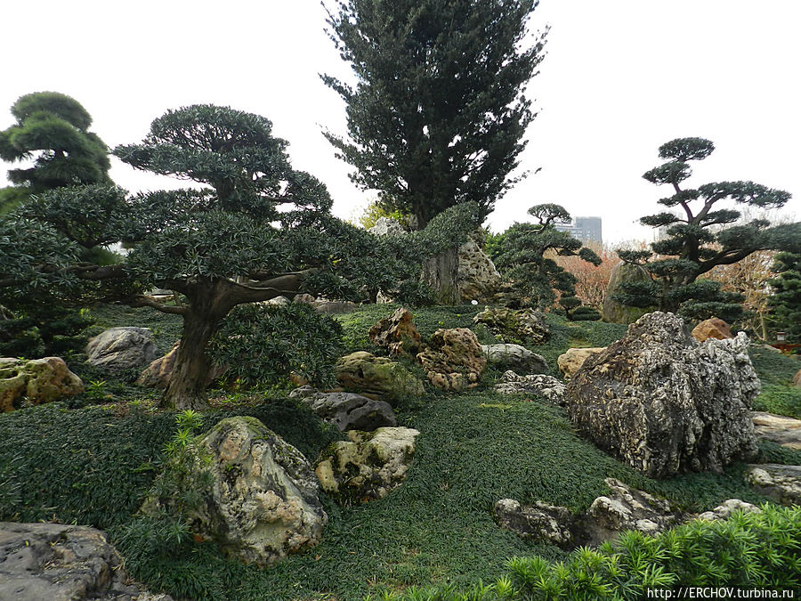 Парк разбит на этом месте искусственно, раньше его не было, и работа проделана большая – запружены пруды, привезены валуны странной формы, окаменелые деревья. Вокруг посажено множество мохнатых кустов и зелёных елей, хвойные иголочки заботливо причёсаны, пушистая травка прикреплена к камням. Конечно, парк не отдаёт девственной красотой, он скорее напоминает холёную женщину, вышедшую из парикмахерской, но в любом случае здесь красиво. На территории есть кафешки и сувенирный магазин, но особенно удивил некий павильон, где собраны камни и расставлены по каким-то особым правилам.