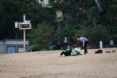 В Стэнли есть большой городской пляж со стороны Tai Tam Bay, но нам гораздо больше понравился небольшой пляж в южной части бухты Стэнли. Из города до него можно дойти пешком по Wong Ma Kok Road минут за пятнадцать или доехать на бесплатном автобусе-челноке, что ходит до жилого комплекса Regalia Bay раз в полчаса.