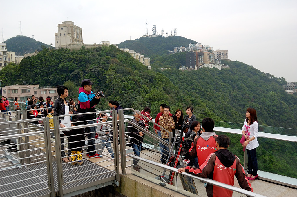 Билеты продаются двух типов, с выходом на смотровую площадку и без оного. Купившие билет без права выхода могут прокатиться на трамвайчике, а потом походить по магазинам — на вершине горы стоит многоэтажный торговый центр. Чтобы попасть на смотровую площадку, надо по эскалаторам подняться на последний этаж, там снова будет проверка билетов.