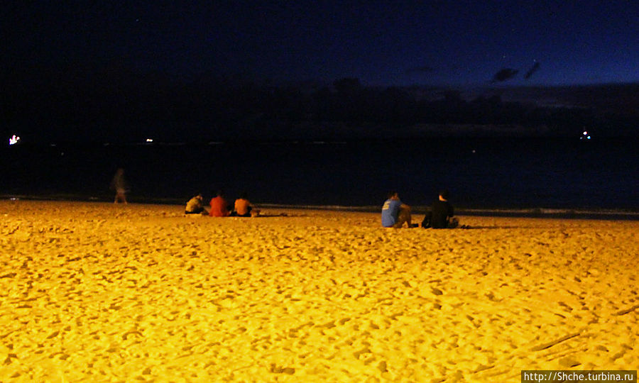 А дальше я нашел на своей новой камере интересный режим "ночная съемка с рук", очень полезный для таких лентяев-любителей, как я. Камера делает 4 снимка подряд и процессор чуть меньше минуты совмещает эти кадры в один. Получается интересно. Местами, как в случае с людьми, сидящими у берега моря, я глазом не видел объекты, которые потом находит в кадре