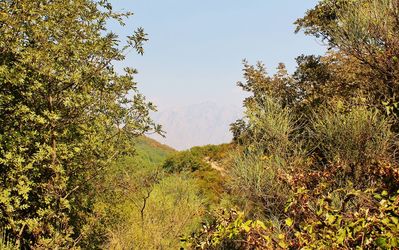 А ещё через некоторое время передо мной открылась обширная поляна, окружённая чередой гор, сплошь покрытых зеленеющими на солнце лесами. При этом Которский залив, наблюдаемый мною часом ранее, исчез окончательно.