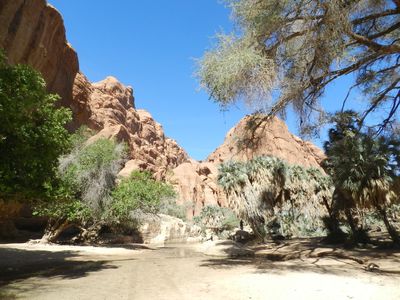 Увы, вода в гельте Башекеле по каньону идёт хорошим ровным потоком, приближаясь к открытому пространству останавливается, на выходе заболачивается, превращаясь в лужу и уходит в песок. Тут невольно напрашивается аналогия с человеческими судьбами.