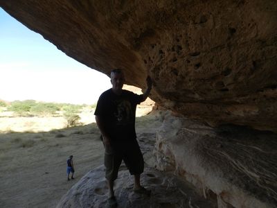 Ярким тому подтверждением стала следующая остановка. Местечко называлось Теркей, оно известно пещерой, где древние люди оставили наскальные рисунки. Пещера представляет собой балкон, накрытый козырьком и нависающий над равниной. Забраться туда не сложно. По всей видимости, именно этот факт в выборе квартирки стал определяющим.