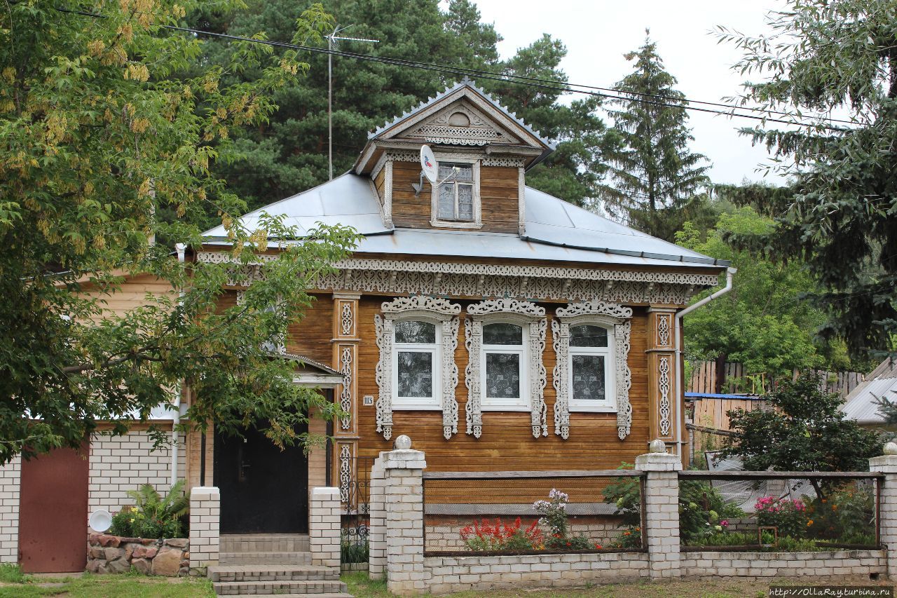 Верхний, идущий по высокому берегу и более длинный, мне нравился. Там было много современных домов, машин и вообще жизнь била ключом. Да и ходил там не знамо за что, но нежно любимый мною "ЛАЗ". А был и более быстрый вариант — на жёлтом "ПАЗике" прошмыгнуть вдоль реки, наблюдая из окошек деревенские домишки. Вот ту дорогу, расположенную под горой, и называли между собой "низом". Внизу мне поначалу не нравилось. Непонятные каменные невысокие строения, а чаще просто "частный сектор", да сады. И Волга то становится видна только под финал поездки. "Низ" "низом", а до реки ещё пара улиц домов. А то и не пара, да и предприятия судостроительные. Кстати, обратите внимание на трубы. Они тут появились при масштабной газификации. Вроде бы и дело благое, но вид на старинные красивые дома портит ужасно! "Распробовала" этот район я уже будучи студенткой, когда мы с моей подругой приехали на летние каникулы. Решили пройтись и выбрали путь покороче, да потише. И вот мы шли, а город "в картинках" делился с нами своей историей. Впоследствии я с куда большим пиететом относилась к этим местам и при случае с удовольствием тут прогуливалась. Этим летом выдалось у меня пару свободных часов, и я, не смотря на то и дело накрапывающий дождик, взяла фотоаппарат и отправилась делать себе "памятку", ну и немного ностальгировать — а то как же без этого.Не помню того времени, когда этого зелёного дома здесь не было. Не самый симпатичный, но яркий и тем примечательный. Просто обычный дом обычных городчан. Посмотрите, позади него — сосновый бор. Прямо на горе. Он и в моём детстве уже был таким. Мы спускались здесь с бабушкой и дедушкой по дороге на дачу, а попутно находили горстку-другую маслят — на обеденный суп. Ох, и вкусно же было! А в палисадниках были сады, вечно обречённые на то, что половину урожая оборвут неугомонные ребятишки — ну а как, если оно само просится если не в рот, то в руку. И ведь дорожная пыль никого не смущала! А пыли тут полно! Я всегда удивлялась тому, как можно жить с окнами, открывающимися даже не на, а в дорогу. Ну кто так строит? А никто! Делали асфальтовую дорогу, отсыпку, вот дома и просели. Вот так. Или даже так. Но, в некотором смысле, получилась некая особенность, "изюминка", правда, не на пользу жителям, увы. А вот и ещё одна "изюминка", встречающаяся в целом в Городце часто — каменный нижний этаж, деревянный — верхний.Кстати, кажется, что проезжая часть прилежит буквально к домам. На самом деле так оно и есть , правда, что-то вроде условного тротуара всё же предусмотрено. Вот попробуй — разойдись здесь со встречным человеком:) Помимо архитектурных изысков (в прямом и переносном смысле), к которым мы вернёмся чуть позже, есть здесь ещё три позиции, которые могут заинтересовать прогуливающегося туриста. Начну с озера Спасского, о котором, складывается впечатление, слышали все, но совсем немногие знают где оно находится именно. Я, наконец, решила прояснить вопрос и даже туда дойти. В нынешних реалиях найти его нетрудно —
