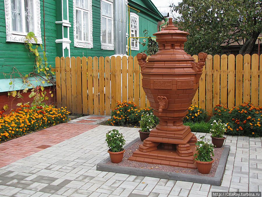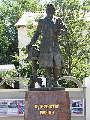 Недалеко от памятника вы заметите длинную лестницу, ведущую вниз к пристани на Александровскую набережную. И всё-равно, ещё не пора спускаться. Лучше углубитесь внутрь центральных улиц и побродите в тишине летнего (весеннего, зимнего или осеннего — тут всегда идёт неспешная жизнь) дня мимо домов обычных жителей. Вы увидите ещё немало представителей замечательной городецкой архитектуры. Вам встретятся резные ворота, расписные ставни и двери, симпатичные палисадники с мальвой и георгинами у домов, забавные поделки жителей, которыми украшают дворы, а ещё много симпатичных клумбочек в старых пнях спиленных деревьев. На время забыв о приличиях, загляните в окна (конечно, я не предлагаю в буквальном смысле врываться в чужое жилище), и вы прочитаете характер и образ жизни сегодняшнего Городца. А когда повстречается прохожий, то обязательно обратитесь к нему с каким-нибудь вопросом и послушайте певучую нижегородскую речь. Если вам показалось, что вы заблудились и указатели на музейный квартал не попадаются давно, то помните, что машину вы оставили на улице Ленина и спрашивать надо именно о ней. Скорее всего окажется, что вы на самом деле совсем рядом. Пока вы ещё не уехали с улицы Ленина, обращу ваше внимание на здание кинотеатра и культурного центра "Метеор", обойдя его, вы попадёте в симпатичный сквер, где стоит памятник русскому купечеству.