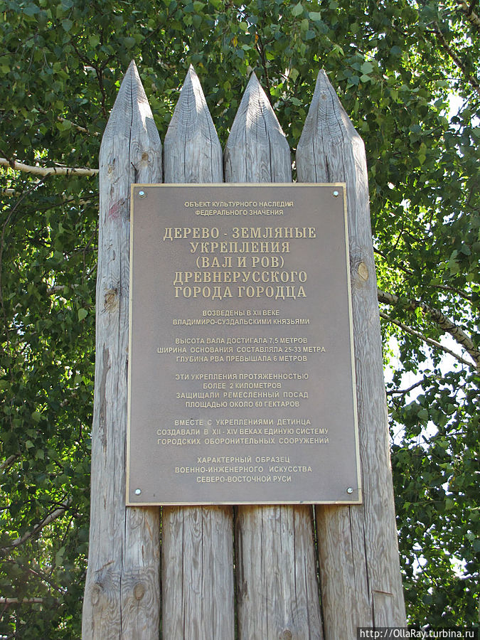 Сегодня туристический маршрут включает ещё и посещение исторического центра — Городецкого вала. Отметиться здесь, безусловно, стоит. Ну, хотя бы, просто для того, чтобы почувствовать сопричастность истории, уловить энергетику, просто для выполнения обязательной программы... тут у кого какие задачи:) На самом деле, прибыв на место, вы увидите холм, густо поросший кустарником и соснами. Собственно, это и есть вал, а у подножия его — ров. Ну чтобы турист совсем не разочаровался, на вал можно подняться, для чего имеется даже специальная лесенка, рядом с которой есть ещё и табличка, подтверждающая, что это действительно вал и действительно ров. А ещё там имеется ( у подножия лесенки рядом с парковкой) достаточно чахлая клумба, посередине которой традиционно воткнут камень с надписью, обещающей здесь крепость "Княжий двор". Предполагается, что идея была проста — облагородить историческое место, воссоздав княжии палаты и крепостные укрепления. Поскольку всё это дело было начато ещё в 2008, то в 2012-м мы, конечно, ехали в предвкушении. Надо ли говорить, что воз, по обыкновению, и ныне там? Ну что ж, продолжаем надеяться и ждать. А пока и прогулка по сосновому лесу на валу тоже неплоха уже самим осознанием факта пребывания на историческом объекте, да и подышать фитонцидами всегда полезно!