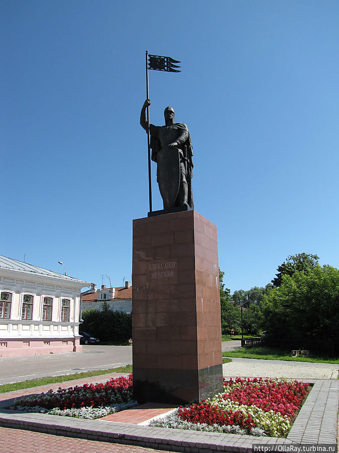 По этой улице двигайтесь на набережную к яркой большой клумбе, в центре которой расположена стела — Символ единения русских городов. Открыт и освящён этот монумент в 1995, в год 775-летия со дня рождения святого и благоверного князя Александра Невского. А вокруг памятного камня была заложена земля из городов, история которых связана с именем этого великого полководца и государственного деятеля. Каждый год эта скульптурная композиция обильно украшается цветами и не теряет привлекательности до глубокой осени.