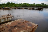 Обратную дорогу нам перегородил невесть откуда взявшийся ржавый баркас, который явно ошибся дорогой в этом месте.