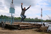 Понтон явно не предполагал, что по нему будут ездить автомобили, и поэтому мы решили использовать его для прыжков...