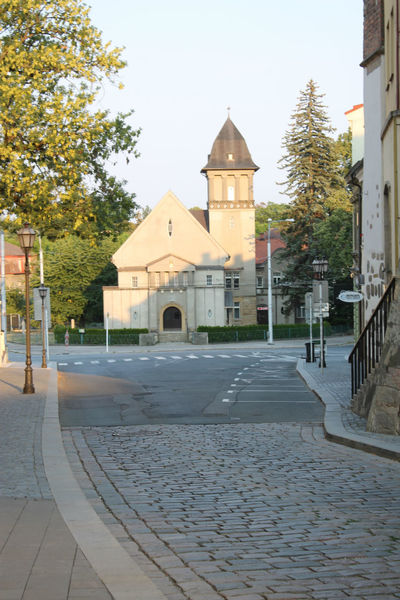 С площади прямая дорога изучить окрестности. Для этого по улице Mýtská направляемся в сторону виднеющегося вдали объекта религиозного культа. Это Приходская Евангелическая церковь.