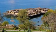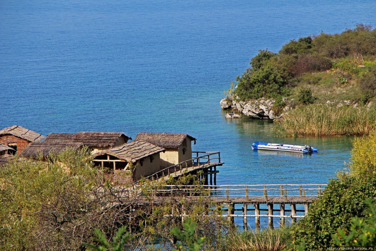 "Около 3 тыс. лет назад на полуострове Градиште в Охридском озере существовал небольшой рыбацкий поселок. Стоял он прямо на воде, на высоком деревянном настиле примерно в 20 м от берега. «Деревянный остров» соединялся с сушей крепким разводным мостиком. Поверх настила были выстроены ряды небольших деревянных домиков. Жили в поселении не круглогодично, а только летом. Упоминания о древнем рыбацком поселке можно найти в очерках знаменитого древнегреческого философа Геродота. Он писал, что на то время в Охридском озере водилось столько рыбы, что ее зачерпывали из воды едва ли не ведрами." (информация сайта tonkosti.ru/Музей_на_воде_на_…)