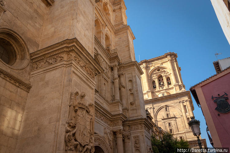 Панорамных видов на Собор вы не увидите, он фактически зажат в узких улочках, и от этого его мощь и масштаб чувствуются еще больше. Он будто прорезает себе пространство среди старинных Гранадских улочек, доказывая всем свое первостепенное положение: вот он я, полюбуйтесь на меня! И, надо сказать, любоваться, действительно есть чем!