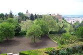 Мы начали осмотр Альгамбры с садов Хенералифе, которые находятся чуть выше на холме Сьерро-дель-Соль. Это позволило сначала увидеть прекрасную панораму Альгамбры сверху. Между ними находится овраг, через который когда-то существовал мост, их соединяющий. Хенералифе был летней резиденцией эмиров Гранады. Поэтому его дворец не блещет архитектурой в сравнении с дворцами Альгамбры. Однако Верхние и Нижние сады, Патио-де-ла-Асекиа — Дворик Оросительного канала, Хардин-да-ла-Султана – сад Султаны или Кипарисовый двор (там можно увидеть кипарис, который видел эмиров, так как ему более 600-от лет), производят впечатление. К сожалению, в апреле я не увидел много из того, что можно увидеть летом. Зелень еще не воспряла после зимы, цветов почти не было. Тем не менее, фантазия дорисовывала недостающие краски.