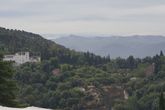 Окутанный утренней дымкой город, разросшийся у подножия холма, на котором гордо и величественно стоит утопающий в зелени на фоне горных очертаний и окруженный ландшафтными садами дворцовый комплекс.