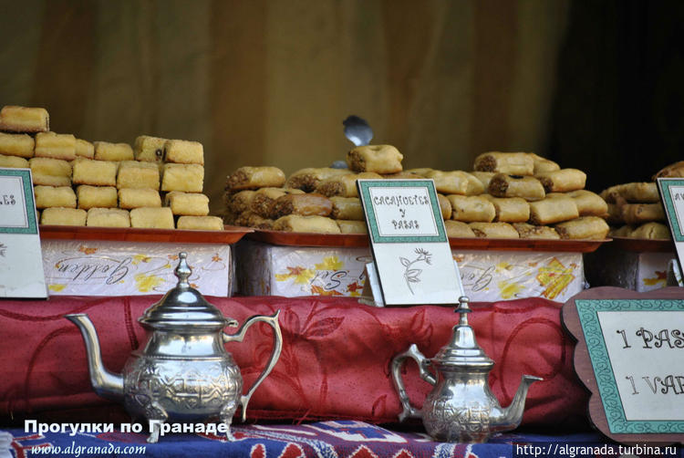 Здесь можно попробовать восточные сладости с арахисом, миндалем и изюмом, запивая их настоящим лиственным чаем с лепестками различных цветов, кардамоном и прочими пряностями. Ну а если чай понравился, то в лавочке рядом его можно приобрести.