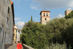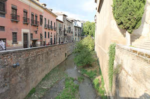 С Новой площади совершим небольшую прогулку по улице Carrera del Darro. Это прогулка фактически по ущелью, где протекает река Дарро и которое символизирует трещину на гранате (расколотый гранат — это символ города и символ присоединенного арабского королевства к Испанской Короне). Началась наша прогулка с осмотра моста Пуэнте-де-Кабрера. Это один из немногих сохранившихся мостов. Предположительно мост построили при перепланировке набережной в начале 17 века, которой предшествовал взрыв порохового склада у церкви Сан-Педро в 1590 году. Здесь начинался вход для жителей Гранады в королевскую резиденцию Альгабра.