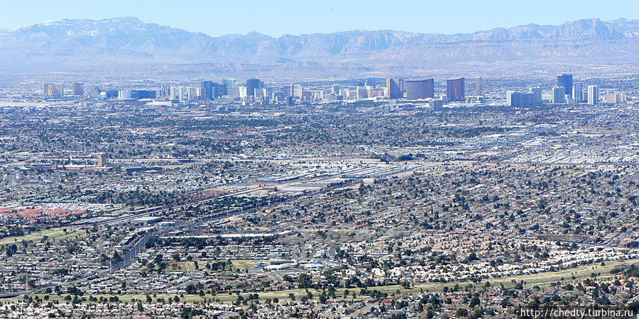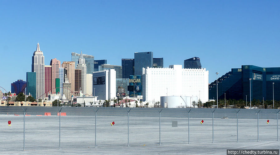 Полет на вертолете до Град Каньона занимает 40 минут, что интересно обратно столько же. Около часа дают погулять по каньону, наливают выпить, дают пожевать бутербродов с капустой, т.е. вся поездка целиком занимает около трех часов. Аэропорт в Лас Вегасе находится прямо в центре города (все равно там никто не спит), так что и здесь время на дорогу практически не теряешь. Организаторы забирают клиентов прямо из гостиниц. Эта фотография сделана с летного поля, сразу за маленьким заборчиком бутафорский Нью Йорк – это практически центр Лас Вегаса.