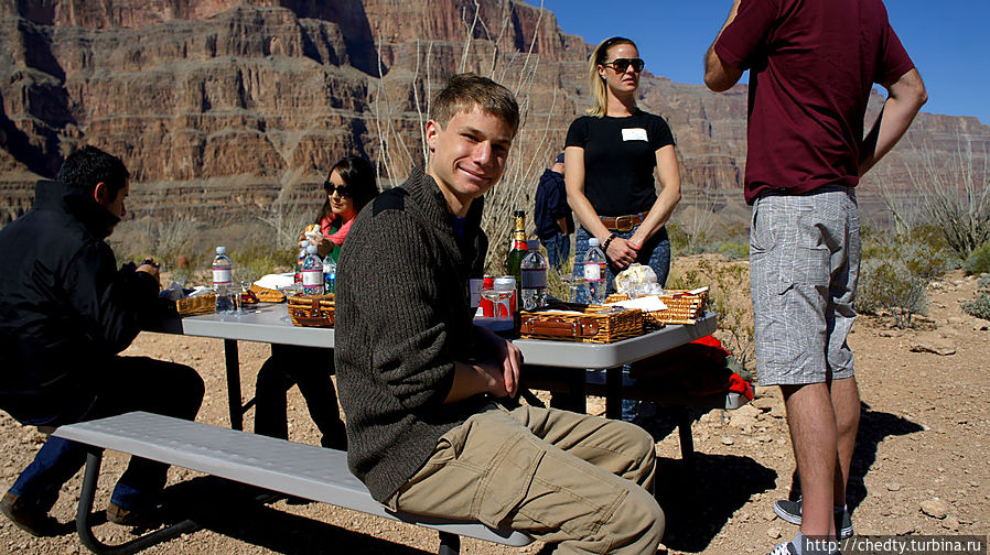 Само понятие завтрака с шампанским неожиданно, на дне Великого Каньона это неожиданно вдвойне.