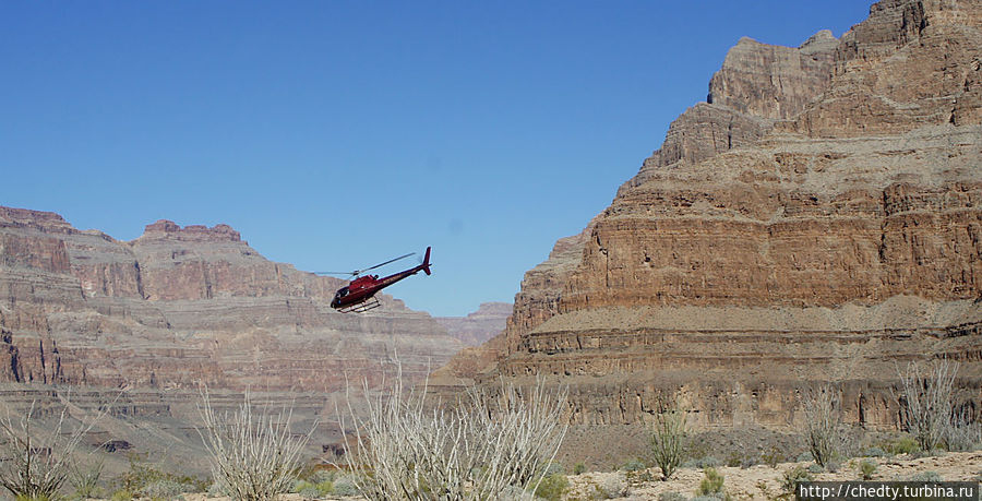 Град Каньон место посещаемое и многократно описанное на различных сайтах, но нам удалось взглянуть на него с другой стороны — снизу. Мы купили билеты на вертолетный тур в Град Каньон из Лас Вегаса и забегая вперед скажу, что совершенно об этом не пожалели.